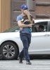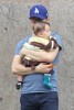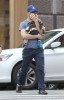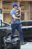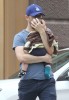 First Look of actor Joseph Gordon-Levitt with his son in New York City, New York on June 3, 2016. Joseph’s son had two mismatched socks on. He made sure to hold the back of his head and kiss him while on his walk.