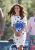 Duke and Duchess of Cambridge are seen at Bute Mills during a visit to Luton in Luton, England on August 24, 2016. Kate Middleton was wearing a white dress adorned with a blue floral print and a pair of nude high-heeled shoes. FameFlynet