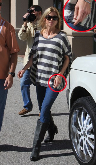Elin Nordegren leaves a Thai restaurant on January 25, 2010 in Orlando, Florida while the nannies took her children out for a day in Disney World. Despite rumors that Elin flew into Orlando from Mississippi last night (January 24) on Tiger Woods’ private jet following a visit with him in sex addiction rehab, she is continuing to go san wedding band. Photos: Fame Pictures