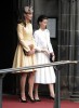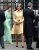 Style-wise, Catherine looked glowing in a custom Emilia Wickstead yellow coat-dress — her third choice from the designer, following that pink garden party dress that she repeated twice, and the green St. Patrick’s Day coat dress. Less thrilling? The brown pumps she trots out on the regs, and that tan curlicue fascinator she’s worn to several events since last year. (Seriously, Kate. Go shopping. We’ll watch the palace for you.)