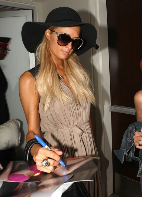 Enjoy the 38 pics of Paris Hilton signing some autographs before departing on a flight at LAX airport in Los Angeles, California on August 28, 2012.