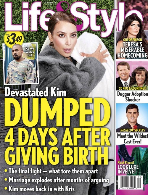 Kim Kardashian Divorce: Dumped by Kanye West 4 Days After Giving Birth to Saint West? BY Dr. Jody Overland on December 16, 2015 | Comments: Leave CommentsRelated : Celebrity Breakup, Kanye West, Kim Kardashian, Tabloid Wednesday (Back to Article)« Prev