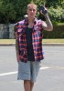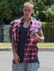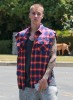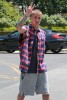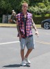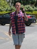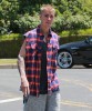 Justin Bieber was spotted out and about in Los Angeles, California on May 27, 2016. He was wearing a sleeve-less red and blue checkered shirt with cut off sweat pants by FameFlynet