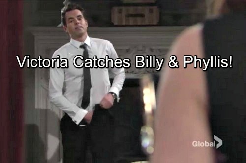 Meanwhile, Billy (Jason Thompson) will get caught in a tight spot. “Y&R” spoilers say Victoria (Amelia Heinle) will catch Billy meeting with Phyllis (Gina Tognoni) in a suite. That may not sound too bad, but it’s the details that make this situation sticky.