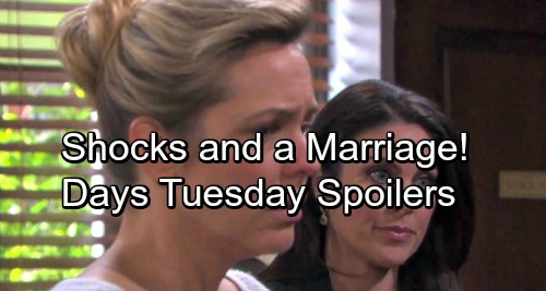 Meanwhile, Andre (Thaao Penghlis) and Kate (Lauren Koslow) will also cause quite a stir. Kate wants to be CEO of DiMera Enterprises and a quickie wedding will help her achieve that. Days of Our Lives spoilers reveal that Kate and Andre will tie the knot in Tuesday’s episode. This is merely an arrangement, but their romance could easily bloom thanks to this bold move.