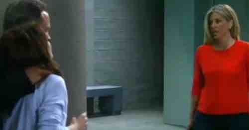 General Hospital spoilers say Liz (Rebecca Herbst) will beg Carly to be careful. Garvey (Rick Ravenello) is one scary dude! Carly will give him a cold stare as she asks where Sonny is. She’s not backing down until she gets some answers.