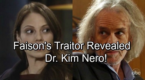 Let’s consider some clues about the traitor. Jason has repeatedly pointed out that they don’t know if it’s a man or a woman. GH definitely wants to remind us of that female option. Kim (Tamara Braun) immediately comes to mind if we’re indeed dealing with a woman here. She’s already lied a few times and General Hospital spoilers say more of her deception will be exposed soon.