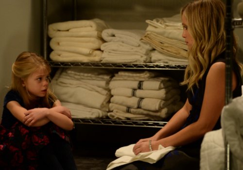 Then at the wedding, Lulu finds Charlotte pouting in a linen closet and sits down for a serious talk with her daughter among the MetroCourt towel stash to finally try and break through all the barriers and bond with her child.