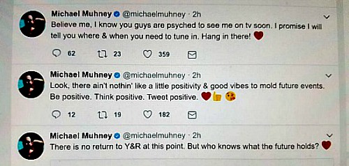 The Young and the Restless spoilers document all things Michael Muhney, as loyal readers know. He recently interacted with a fan who asked if he would be back on TV (not specifically Y&R) in 2017. Muhney responded by tweeting, “I hope it’s pretty likely.” Muhney interacted with another fan on June 27, tweeting, “There is no return to Y&R at this point. But who knows what the future holds,” followed by a heart emoji.