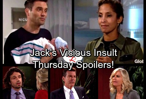 That’s when Jack will deliver a harsh blow. He’ll correct Ashley and contend that John (Jerry Douglas) was his father, not hers. If Jack wants Ashley to back off, this isn’t the way to make it happen. Jack’s cruelty will only make Ashley more determined to stay in control at Jabot.