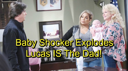 Days of Our Lives (DOOL) spoilers tease that Lucas (Bryan Dattilo) will be in for another shocker. He was blindsided by Bonnie (Judi Evans), who told him that they had slept together when he thought she was Adrienne (Judi Evans). Then he was totally floored when Bonnie claimed that she was the mother of his baby, and then Shelia (Tionne Watkins) came waltzing in with the baby in tow.