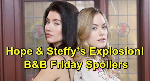 The Bold and the Beautiful (B&B) spoilers update for Friday, December 21, tease that Hope (Annika Noelle) will push Steffy (Jacqueline MacInnes Wood) to her limit. They’ve been at odds over Taylor (Hunter Tylo) for a while now and neither one of them intends to budge. However, Steffy probably thought they could at least put their problems aside for Christmas. Instead, Hope’s starting a holiday war!