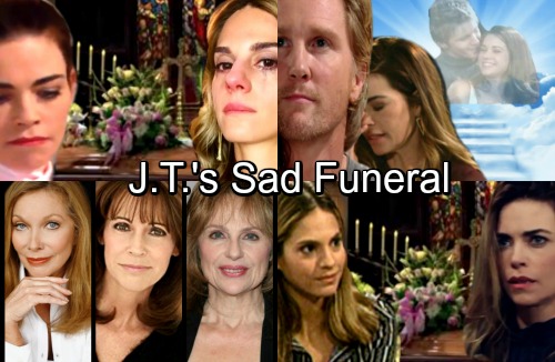 The Young and the Restless (Y&R) spoilers indicate that three cast returns signal Thad Luckinbill’s (J.T.) departure. Mackenzie (Kelly Kruger), Raul (David Scott Lago) and Brittany (Lauren Woodland) are all returning to Genoa City. Three, simultaneous signs that something dramatic is about to happen – like a funeral.