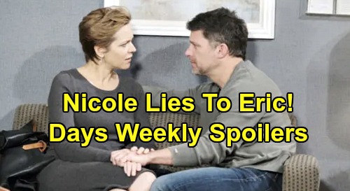Over with Nicole Walker (Arianne Zucker), she’ll learn a secret she wishes she could unlearn! Nicole will discover that Sarah Horton (Linsey Godfrey) is pregnant, so she’ll naturally plan to tell Eric Brady (Greg Vaughan). Xander Cook (Paul Telfer) will insist Nicole can’t do that. He’ll plead with her to keep the secret, so Nicole will relent and keep her mouth shut. This doesn’t sound like great news for “Ericole,” but we’ll see how things play out!