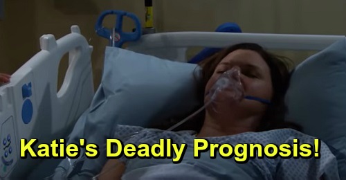 Dr. Jordan Armstrong (Vincent Irizarry) will indeed figure out the problem with the help of his team. Unfortunately, it won’t be something medication can fix. B&B spoilers say Katie’s in kidney failure, so she’ll need a transplant or else death is imminent. Bill and the others will find out Katie’s prognosis within the next couple episodes, so they’ll definitely fear the worst.