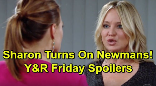 The Young and the Restless spoilers say something will happen that turns Sharon against the Newmans, so this seems like a good fit. She’ll realize Phyllis was right about Nikki and Victoria being willing to betray them. Sharon will tell Phyllis she’s in on their new partnership, so the drama’s about to heat up.