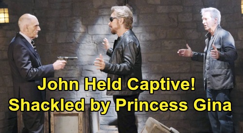 Meanwhile, Stefano will do the same for Princess Gina. He’ll use his bogus mission with John as the perfect trap opportunity. At the end of a European adventure, John will be knocked out and ultimately held captive back in Salem. Days of Our Lives spoilers say John’s hands will be shackled above his head – and he’ll be left hanging from the ceiling!