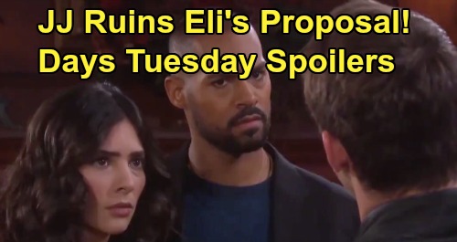 JJ will declare that Eli can’t marry Gabi because Lani loves him with all her heart. Eli will definitely be thrown for a loop, so he’ll have a lot to process. As for Gabi, she may worry about how much Lani spilled!