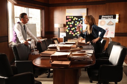 Benji and his team watch a man give a video deposition of how his life was ruined by the valve. They worry as he is on the witness list.