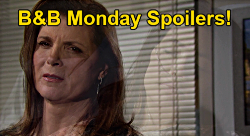 The Bold and the Beautiful (B&B) spoilers for Monday, April 11, tease that Sheila Carter (Kimberlin Brown) will sneak in Steffy Forrester’s (Jacqueline MacInnes Wood) hospital room while Brooke Forrester (Katherine Kelly Lang) extends a peace offering to Taylor Hayes (Krista Allen).