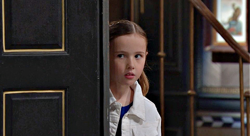 Downstairs, Kristen DiMera (Stacy Haiduk) armed herself with a fire poker, but the intruder from the DiMera tunnels turned out to be Rachel Black (Finley Rose Slater) after she snuck away from camp.