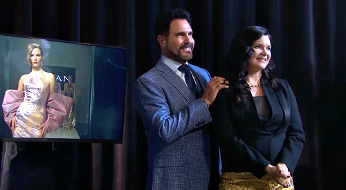 The Bold and the Beautiful (B&B) spoilers for Thursday, April 23, reveal that Bill Spencer (Don Diamont) and Katie Logan Spencer (Heather Tom) will get ready for the next Logan fashion event, so that’ll bring some talk about the Forresters and all the conflict that’s been going on.
