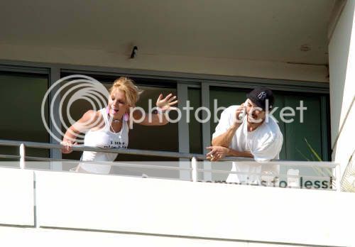 Doesn’t these pictures look oddly similar to the old pictures with KFed and Britney on a balcony? She sure knows how to pick em!
